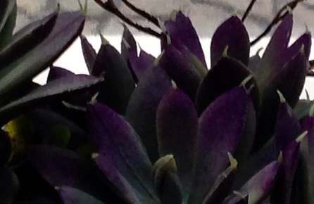 Experiments with close-up fotos of small plants placed along the windows in the breakfast eating area of the hotel…
